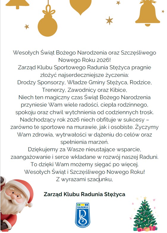 W dniu 25.06.2025 Walne zgromadzenie KS Radunia Stężyca wybrało swoje nowe władze. Prezesem Zarządu został Andrzej Gontarz w vice Prezesem Zarządu Mateusz Zarach.